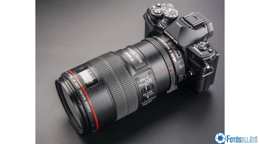 | Canon EF objektívek használatát teszi lehetővé mikró 4/3 bajonettes gépvázakon. A beépített lencserendszerrel olyan látószöget és fényerőt kapunk, mint egy full frame gépen. | |