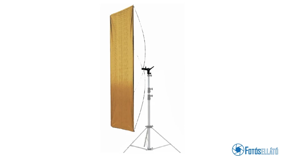 A Falcon Eyes arany / fehér reflektor keret könnyű reflektorkerettel és állvánnyal valamint állványtartóval rendelkezik, amely lehetővé teszi a keret és a reflektor könnyű állványra történő felszerelését.