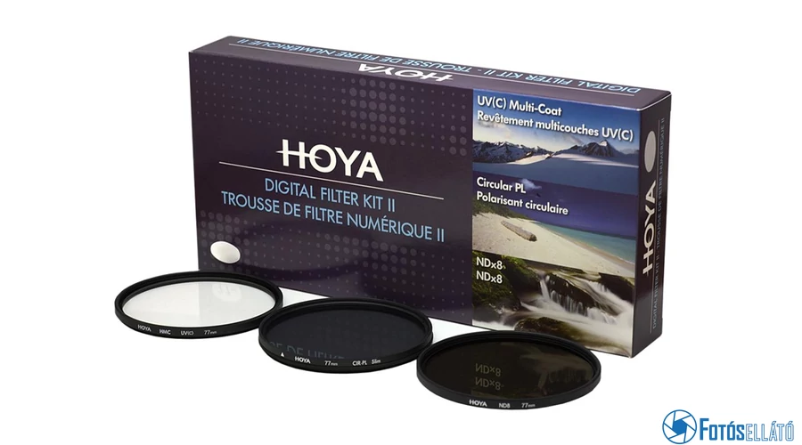 | A HOYA Digital Filter Kit II készletben a fényképezés három leggyakrabban használt színszűrőjét helyeztük el egy kiszerelésben, mely egyben a gazdasásossági elveket is követi. A készletben 3 szűrő található | |