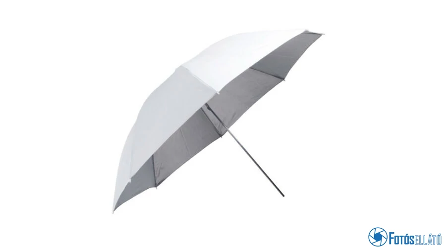 Fekete/ezüst ernyő 110cm átmérővel. Az ezüst reflex ernyő segít a kontrasztos képek és a ragyogó színek visszaadásában.
