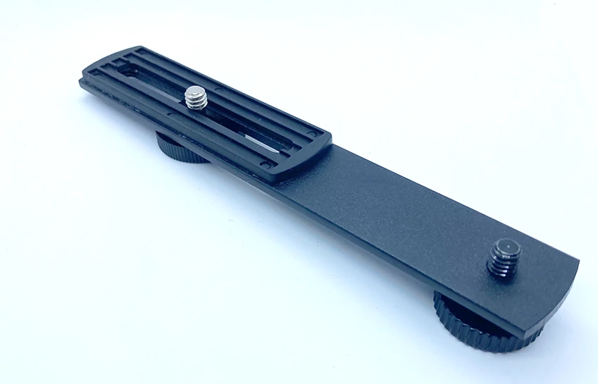 Maximális terhelhetősége 2 kg. Két 1/4”-os csavarral rendelkezik, amelyből az egyik állítható 7–13cm között.