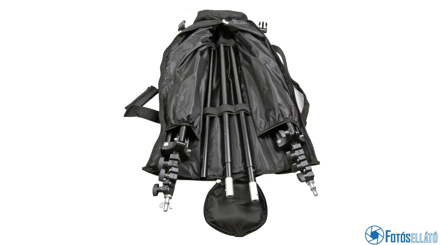 A rendszer gyorsan és könnyen összeszerelhető és egy hordtáskával van kiegészítve. A rugalmas háttértartó rendszer tökéletes portré-fotózásra, reklámfotózásra, termékfotózásra, vagy asztali fotózásra.
