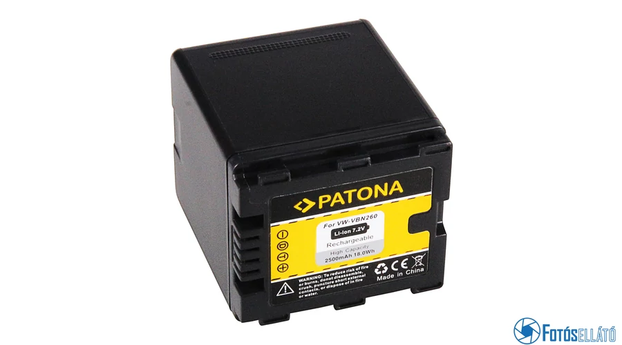Újratölthető, minőségi pótakkumulátor Panasonic készülékhez. PATONA akkumulátor Panasonic HDC-SD800 SD900 SD909 TM900 HS900 VW-VBN260 |