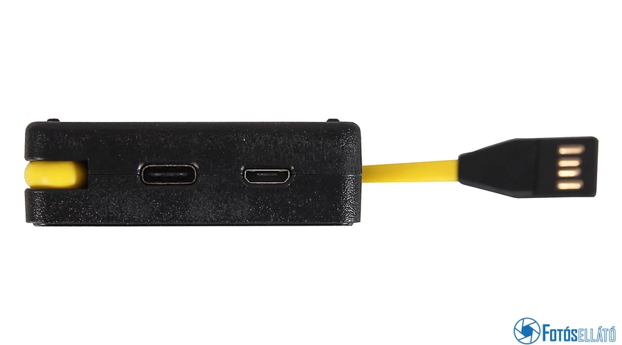 A töltő USB-A, USB-C vagy Micro-USB csatlakozással csatlakoztatható az áramforráshoz. Az integrált 19 cm hosszú csatlakozókábelt a praktikus kábeltárolóban lehet tartani a töltő körül.
