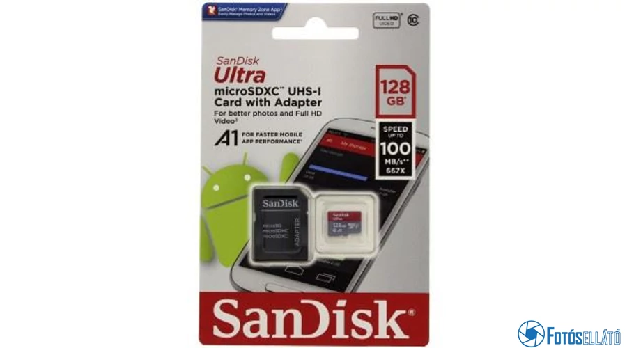 SanDisk MicroSDX Ultra 128GB + SD adapter memóriakártya - kulcsfontosságú jellemzők