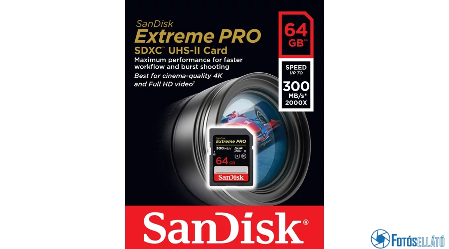 SanDisk 64GB Extreme Pro SDXC™ memóriakártya (300/300 MB/s), 8K, V90, UHS-II