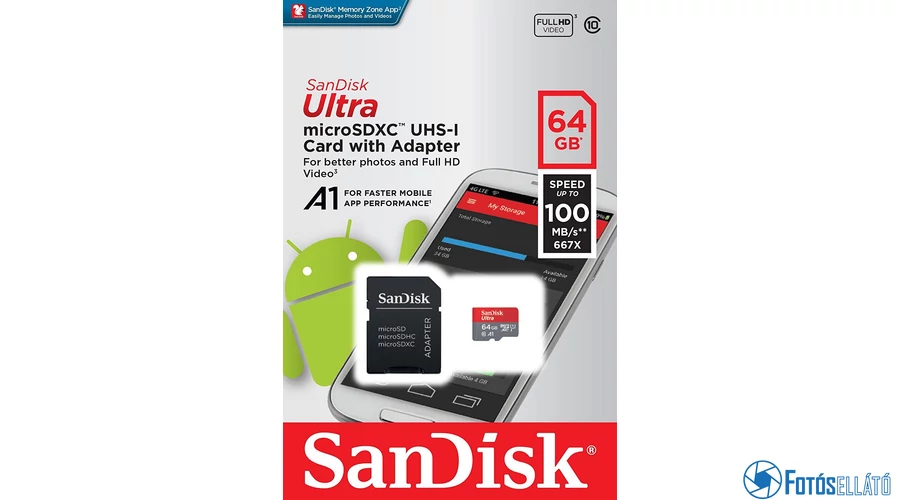 SanDisk 64GB microSDXC™ Mobile Ultra™ memóriakártya, + adapter, (140MB/s) class 10, A1 + Android APP