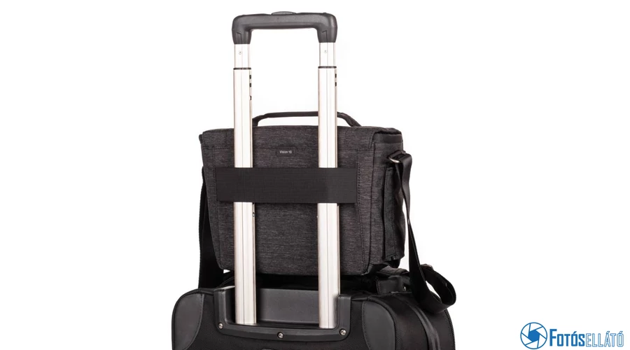 Míg a párnázott, állítható vállszíj lehetővé teszi, hogy ezt a táskát a test mentén vagy egészén hordják, a Vision 10 a beépített felső fogantyúval is hordozható. Tartós nylon és poliészter konstrukcióval, vízálló, kopásálló aljjal rendelkezik, ez a táska varratmentesen lezárt esővédő huzatot is tartalmaz heves esőzések esetén. Miközben egy teleszkópos fogantyúval rendelkező bőrönddel utazik, a hátsó panelen átmenő sáv lehetővé teszi a teljes táska felszerelését az ilyen fogantyúkhoz a további kényelem érdekében.