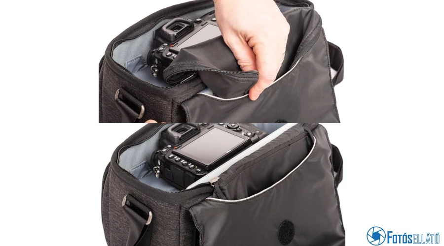 Ez a Think Tank grafit színű Vision 10 válltáska egy sokoldalú, messenger stílusú kamera táska, amelyben közepes méretű DSLR képes elférni két-három lencsével, beleértve egy leválasztott 24-70 mm f / 2,8 lencsét. Ha ehelyett tükör nélküli kamerarendszer tárolására használják, akkor három-négy lencse férhet el, beleértve egy leválasztott 50-140 mm-es lencsét. A Vision 10 fő rekesze tartalmaz egy 10 "-es tablet zsebet és két párnázott, állítható elválasztót.