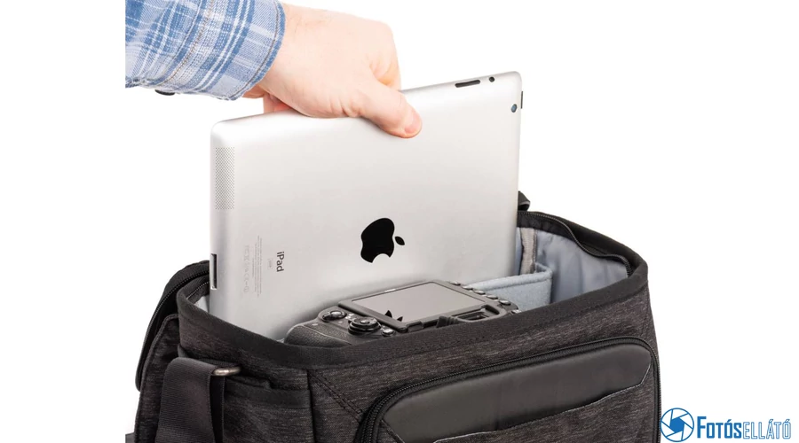 Tárolás: Közepes DSLR fényképezőgép 2-3 lencsével Dedikált zseb 10 "-es táblagéphez |