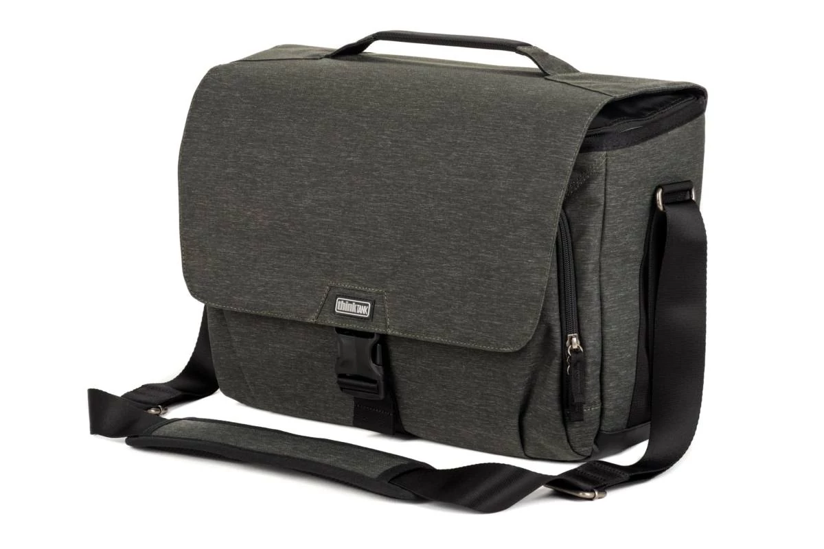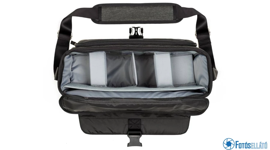 Ez a Think Tank grafit színű Vision 15 válltáska sokoldalú, messenger stílusú fényképezőgép táska, amely közepes méretű DSLR-t képes tárolni akár három-öt lencsével, beleértve egy csatolt 24-70 mm f / 2,8 lencsét, valamint leválasztott 70-200 mm f / 2,8 lencséket, illetve egy fényképezőgép-vakut. A Vision 15 fő rekeszében, amely tartalmaz egy 15 "-es laptop zsebet, három párnázott, állítható elválasztó található. Sokféle kamera táskától eltérően a Vision 15 fő rekeszében saját cipzárral ellátott fedél található javítva a biztonságot és az elemekkel szembeni védelmet.